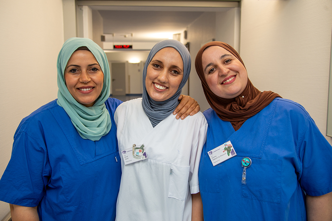 Zu den neuen Mitarbeitenden zählen Amel Ben Salem, Amal Ayed und Karima Habachi. Die drei Frauen stammen aus derselben Region in Tunesien, kennen sich seit vielen Jahren und haben teilweise bereits dort gemeinsam die Schule besucht. Alle absolvierten nach dem Abitur ein dreijähriges Pflegestudium mit internationalem Zertifikat und verfügen über langjährige Berufserfahrung im Krankenhaus. „In Tunesien hatten wir ein größeres Aufgabenspektrum“, berichtet Amal Ayed. „In Deutschland sind einige Tätigkeiten anders geregelt, daran mussten wir uns erst gewöhnen.“